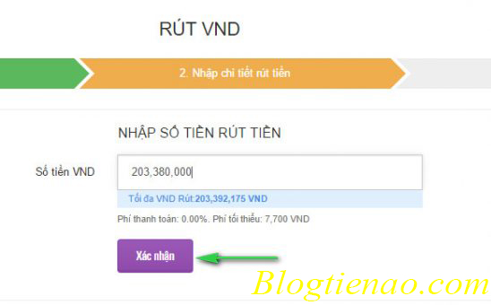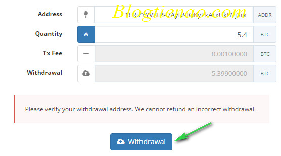 Khi rút tiền, bạn sẽ mất 1 khoản phí nhỏ, tuy nhiên nó không đáng là bao. Xong xuôi bạn nhấn “Withdrawal”.