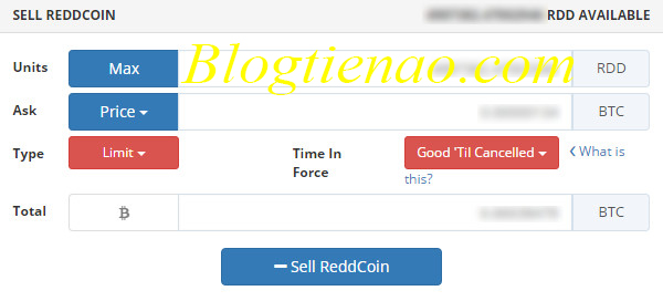 Nhập thông tin bán Altcoin– Unit: Chọn số lượng altcoin bạn muốn bán, bấm vào MAX nếu muốn bán hết