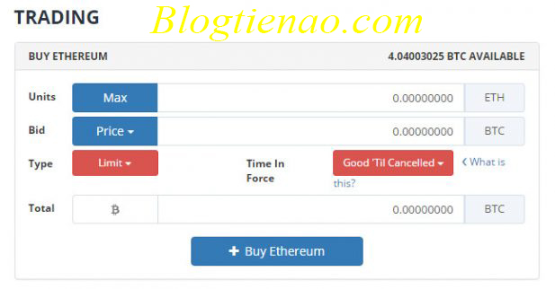 – Units: Bạn điền số altcoin bạn muốn mua, chọn MAX nếu muốn mua hết với số BTC hiện có