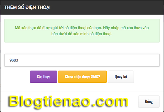 Nhập vào số tiền Bitcoin muốn bán– Nếu có cửa sổ xác minh qua sđt hiện lên thì bạn nhập sđt của bạn vào để hệ thống gửi mã code xác nhận, sau khi nhận được mã code qua sms thì nhập vào để tiếp tục nhé. Nhưng nếu bạn đã xác minh ở trên rồi thì sẽ không có nữa.