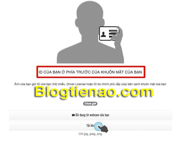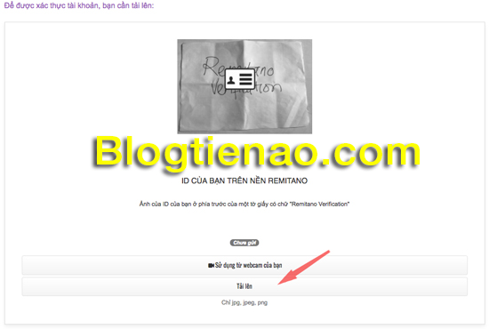 Xác minh tài khoản trên sàn Remitano. Ảnh 2Ảnh 2: Tiếp đến tải lên ảnh bạn chụp tự sướng và tay cầm CMND.
