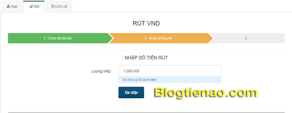 Rút VNĐ về VietcombankRemitano sẽ hiển thị lại một lần nữa các thông tin rút của bạn, bạn kiểm tra lại xem chính xác chưa rồi tiếp tục nhấn “Xác nhận”. Ok vậy là xong số tiền này sẽ được chuyển vào tài khoản Vietcombank của bạn trong vòng 10 – 15 phút.
