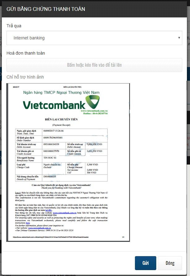 Chuyển tiền cho người bán ETHBước 4: Sau khi thanh toán xong, Vietcombank sẽ gửi cho bạn một email và trong đó có biên lai thanh toán đã hoàn tất của bạn, bạn chụp ảnh lại biên lai này để phòng trường hợp bên bán ETH họ không xác nhận thanh toán thì bạn cần nhờ tới sự hỗ trợ của Remitano để lấy tại tiền.