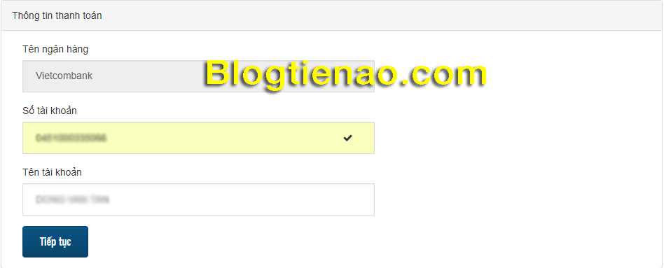 Chọn người mua EthereumBước 3: Bạn nhập vào số tài khoản ngân hàng Vietcombank của bạn và nhấn “Tiếp tục”.