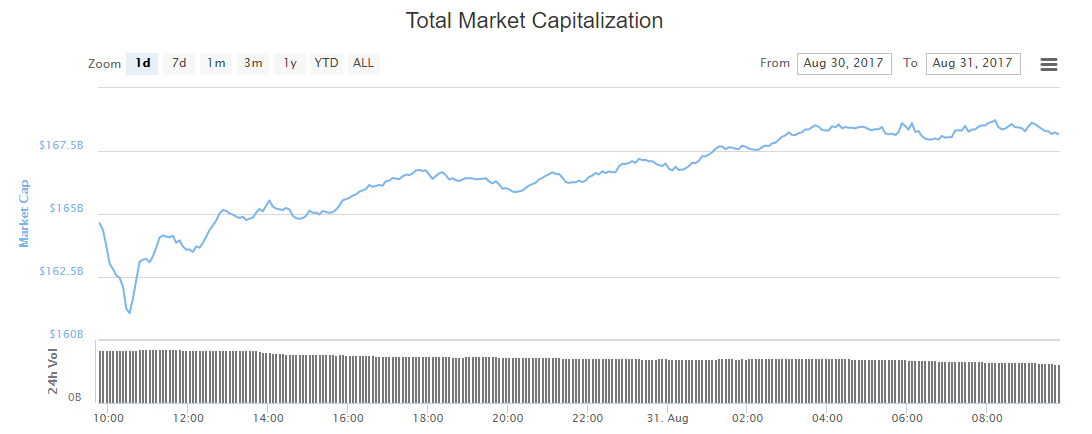 Thị trường đã hồi phục trở lại trong hôm nay sau phong độ chậm chạp vào thứ Tư. Giá Bitcoin đang dẫn đường, vượt qua con số kỷ lục mới là 4.739 USD trên sàn Bitstamp. Giá ethereum, trong khi đó, tiếp tục tăng lên 400 USD. Tổng cộng có 80 trong số 100 đồng tiền thuật toán hàng đầu đang trên đà tăng trưởng mạnh, nâng tổng vốn hóa thị trường lên mức cao nhất mọi thời đại – 170 tỷ USD.