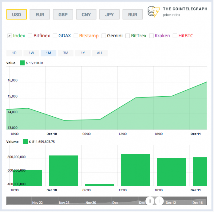 Vào cái ngày mà hợp đồng tương lai Bitcoin lần đầu tiên được triển khai trên sàn CBOE – sàn giao dịch chứng khoán được Mỹ được cấp phép và quản lí đầy đủ, giá đã nhảy 10% lên $16,936.