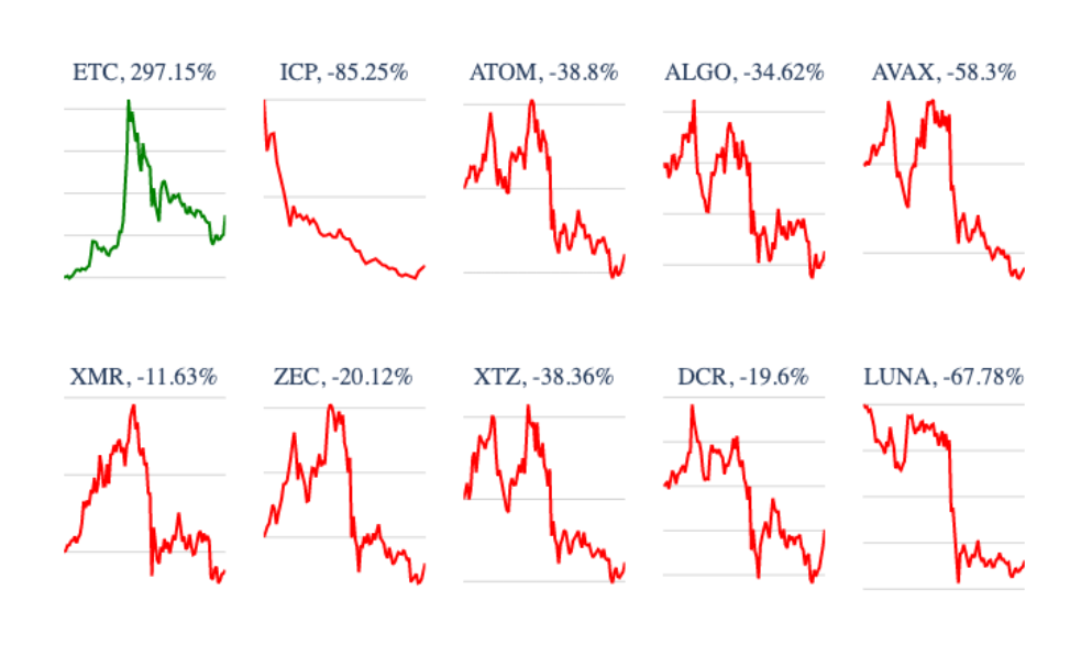 ETC là coin hoạt động tốt thứ hai chỉ sau DOGE và đã tăng 297% mặc dù giá Bitcoin giảm gần 39%.