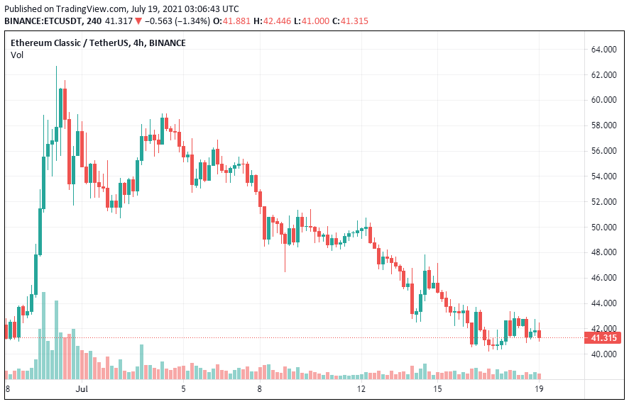 Mặc dù ETC giảm 76% so với mức cao nhất mọi thời đại, nhưng nó đã tăng 15% so với mức thấp gần đây vào ngày 22/6. Tại thời điểm viết bài, ETC đang giao dịch tại 41,32 đô la, mang lại mức lợi nhuận 804% YTD.