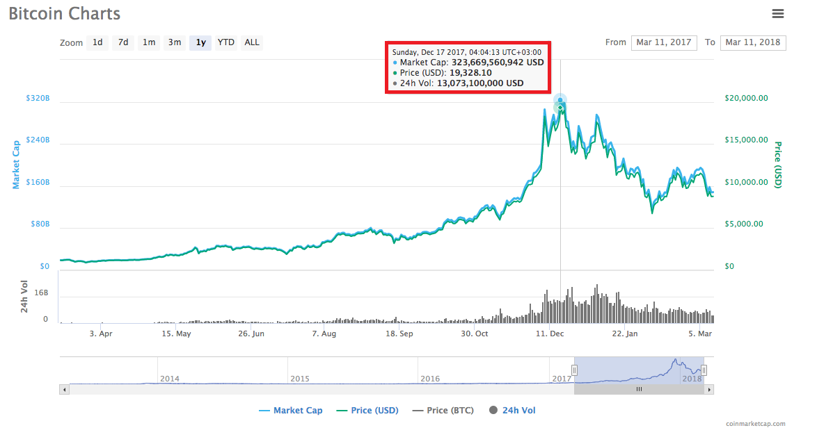 Thống kê của Google Trends dành cho từ khoá “Bitcoin” chạm đỉnh trong khoảng thời gian từ 17-23/12, đồng thời với quá trình trào dâng giá trị của BTC lên gần $20,000 vào ngày 17/12/2017.
