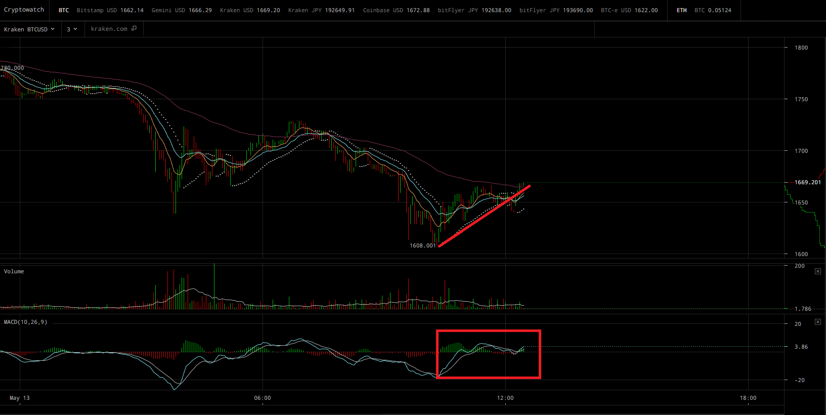Đến thời điểm hiện tại, Bitcoin đã chứng tỏ cho thị trường thấy sự kiên cường của mình và đang dần phục hồi trở lại. Giá đồng tiền trên bắt đầu cho thấy động lực của mình, thay đổi vị trí đường MACD vào ngày hôm qua và chỉ sau vài giờ, nó đã quay trở về khu vực $1,700/BTC.