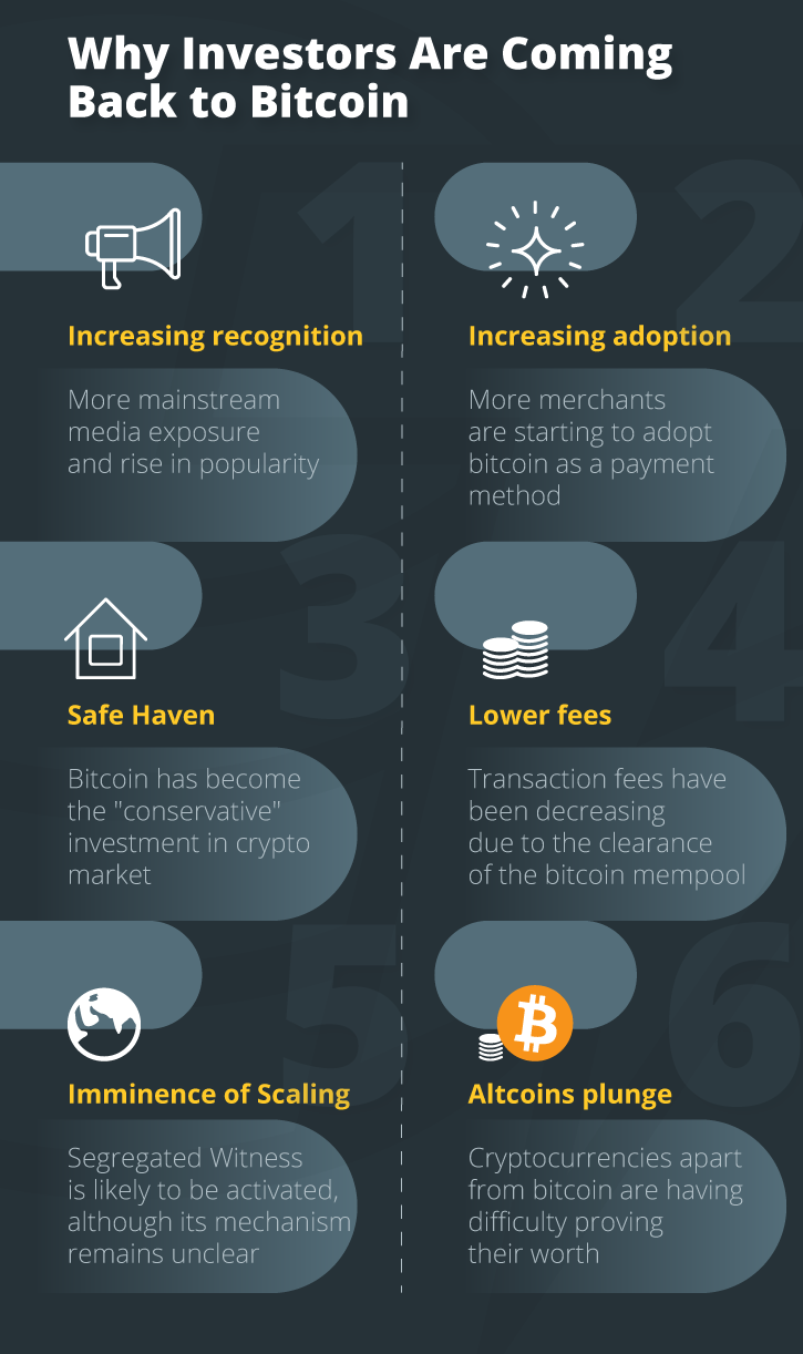Traders và các nhà đầu tư đang trở lại với Bitcoin nhờ vào việc BIP 91 vừa khóa mục tiêu và khả năng cao SegWit sẽ được kích hoạt trong tương lai gần.