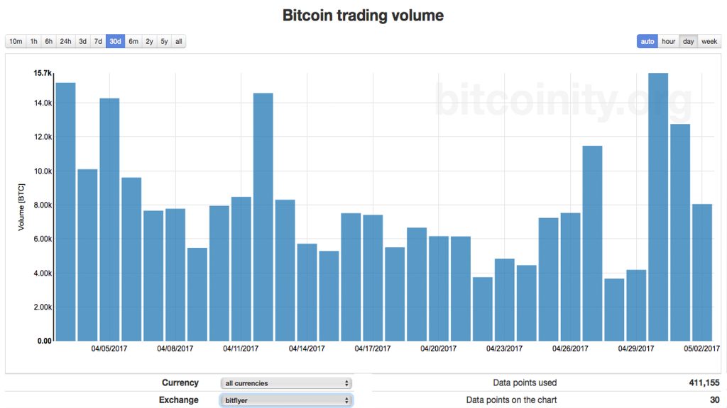 Thống kê cho thấy mức giao dịch thương mại USD và JPY cao hơn bao giờ hết, nhưng một số người tin rằng những con số này nên được thực hiện với một con mắt khách quan. Ví dụ, vào thời điểm Trung Quốc chiếm lĩnh thị trường bitcoin, khi đó các sàn giao dịch được phép kinh doanh mà không có phí làm tăng đáng kể khối lượng CNY. Kể từ khi Trung Quốc đặt thêm phí BTC/CNY khối lượng thương mại tại Trung Quốc đã giảm mạnh. Một lợi thế hấp dẫn đối với việc kinh doanh Bitcoin của Nhật Bản là việc không tính phí cho mỗi giao dịch. Điều này làm cho sự hoài nghi của khối lượng giao dịch bitcoin của Nhật Bản như JPY thống kê có thể là một mối lo không đáng có.