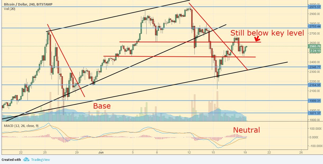 Giá của đồng Bitcoin đã phục hồi rất tốt sau khi giảm xuống mức $2150, nhưng vẫn dao động dưới mức chính $2600. Dự báo sự điều chỉnh giá vẫn còn tiếp tục với BTC trong vài tuần tới. Mức hỗ trợ chính là $2450.
