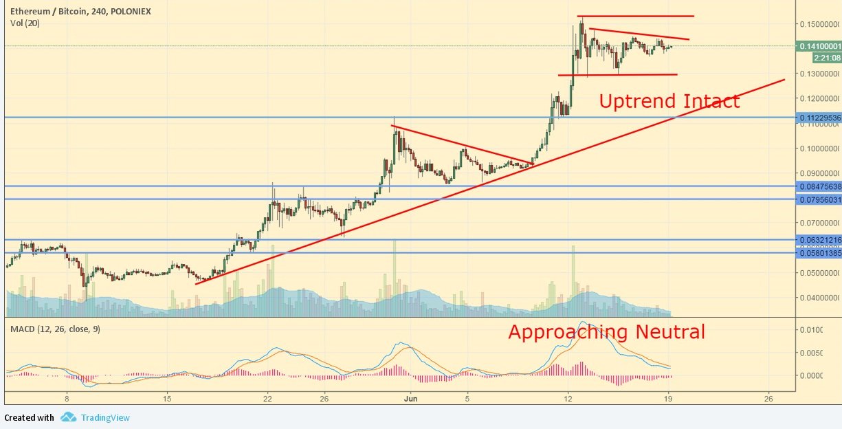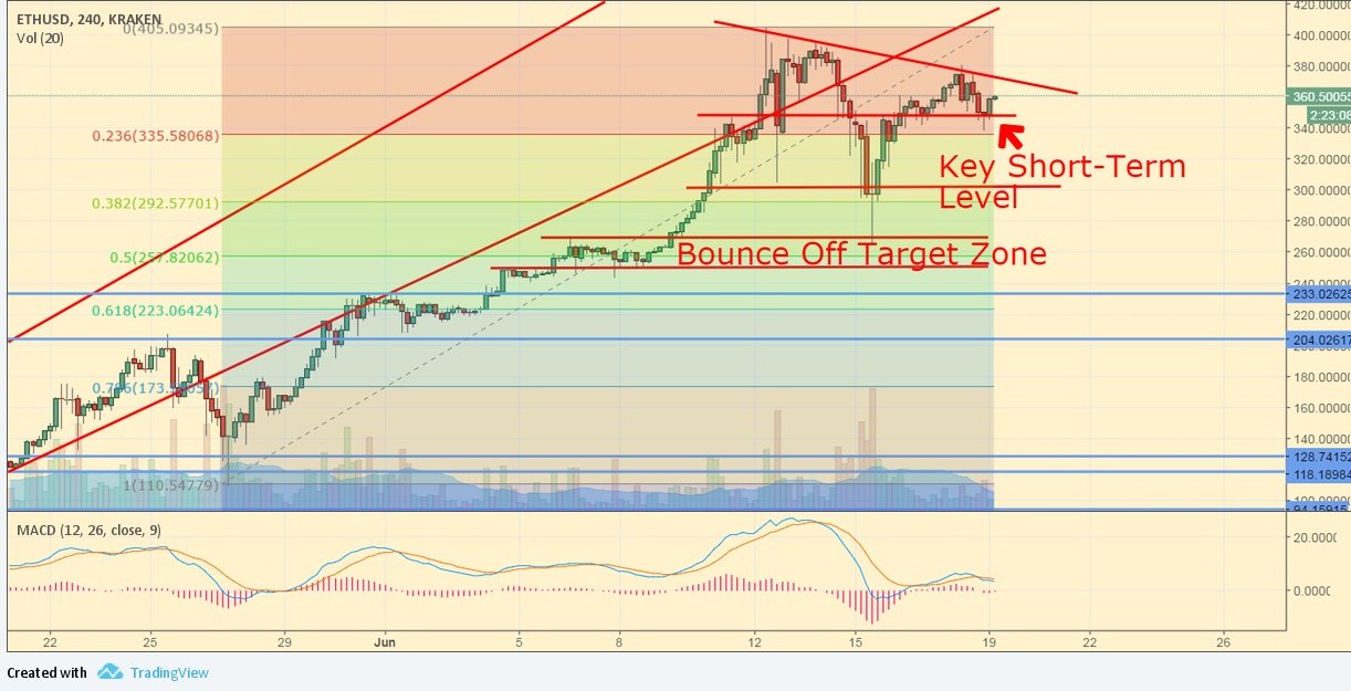 Nếu phân tích về mặt kỹ thuật, Ethereum có vẻ tốt hơn nhiều so với Bitcoin, đáng chú ý là đợt bức tốc hồi tuần trước sau đó lại xuất hiện dấu hiệu điều chỉnh mạnh. Cả hai cặp ETH/BTC và ETH/USD đang trong xu hướng tăng dài hạn, và ETH/USD cũng đang trên tín hiệu mua ngắn hạn ở mức $350. Dự đoán ETH vẫn còn tăng trong tuần tới, với cặp ETH/BTC có thể tăng về mức kiểm tra gần 0,15, trong khi ETH/USD sẽ giữ ở mức hỗ trợ $300 dù rong trường hợp có thêm một đợt chỉnh giá tiếp theo.