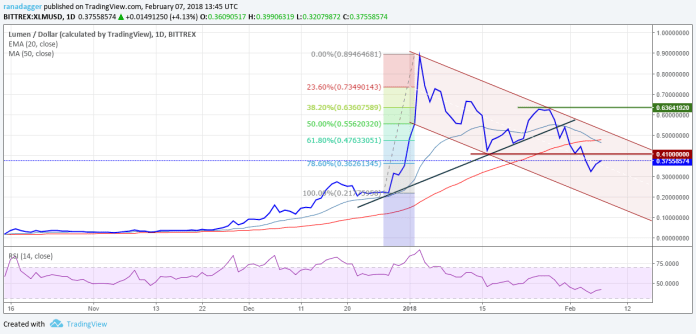 Tương tự như các đồng tiền số khác, cặp XLM/USD hiện đang trong xu hướng giảm, có thể sẽ phải đối mặt với kháng cự ở mức 0,41 USD, mức này hồi trước đóng vai trò như một ngưỡng hỗ trợ mạnh.