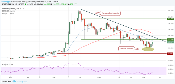 Như chúng tôi đã đề cập ở kỳ phân tích trước, Litecoin có mức hồi phục khá mạnh so với các đồng tiền số khác. Trong khi các đồng tiền số khác đã hình thành đáy mới vào ngày 6 tháng 2, trong khi đó cặp LTC/USD đã giữ được mức thấp trên đáy vào ngày 2 tháng 2, đây là dấu hiệu cho sực mạnh từ đồng tiền số này.