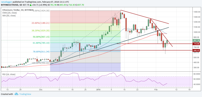 Trong kỳ phân tích trước của chúng tôi, chúng tôi kỳ vọng vùng hỗ trợ mạnh tại mức 611 USD đến 640 USD. Ethereum tạo đáy ở mức 565 USD vào ngày 6 tháng 2.