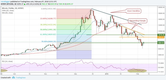 Ở kỳ phân tích trước chúng tôi đã khuyến nghị nên mua vào trong phạm vi 5,500 USD đến 5,800 USD trong bối cảnh bán tháo đang xảy ra, mức này đã gần đạt đến phạm vi khuyến nghị mua vào của chúng tôi, nhưng nó đã không xảy ra khi mà Bitcoin đã chạm đáy ở mức 6,075 USD vào ngày 6 tháng 2.