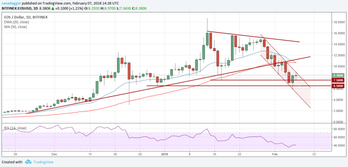 Nếu cặp EOS/USD giữ trên mức 7,5 USD chúng ta có thể thiết lập các vị trí mua vào mới.