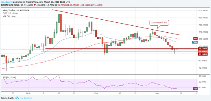 NEO đã chịu áp lực từ những nhà đầu cơ giá giảm, những người đang cố gắng phá vỡ vùng hỗ trợ quan trọng là 86 USD đến 93 USD.