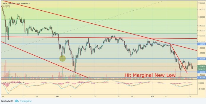 IOTA vẫn ở dưới mức then chốt 1,5 USD kể từ mức thấp của thứ sáu tuần trước và nó đã tiếp tục giảm trong phiên hôm nay.