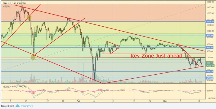 Ethereum cũng đang có chung tình trạng tương tự như Bitcoin, các chỉ số còn tương đối yếu, và vẫn còn nằm dưới mức kháng cự chính ở mức 740 USD.