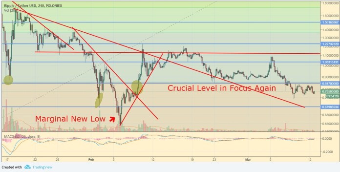 Một lần nữa Ripple vẫn không thể vượt qua được mức kháng cự chính 0.85 USD, do đó đồng tiền số này cần phải phá vỡ ngưỡng quan trọng 0.85 USD này hoặc tệ lắm là duy trì trên ngưỡng hỗ trợ 0.68 USD.