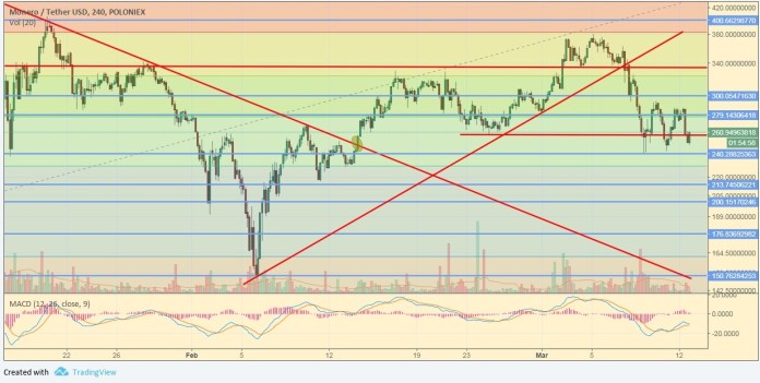 Monero vẫn đang trong xu thế giảm ngắn hạn sau khi tìm thấy ngưỡng hỗ trợ gần mức 240 USD, và đồng tiền số này đã tương đối yếu trong vài ngày gần đây, chỉ trong thời gian ngắn Monero đã thu hồi lại mức kháng cự 280 USD.