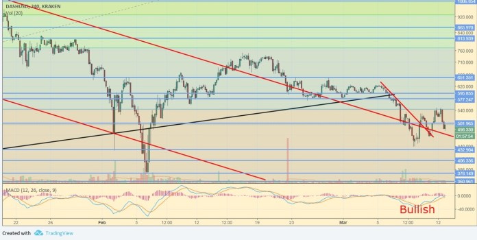 Trong phiên giao dịch hôm nay, Dash cũng có sự suy giảm nhẹ và đồng tiền số này nên giữ trên mức thấp xung quanh ngưỡng 510 USD để duy trì tín hiệu tích cực trong ngắn hạn.