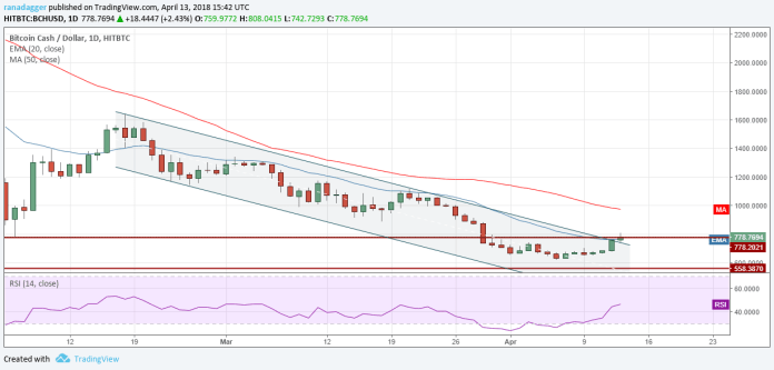 Bitcoin Cash đã phá vỡ mức kháng cự tại 778 USD và đường EMA 20 ngày trong 20 ngày, thiết lập một xu hướng ngắn hạn.