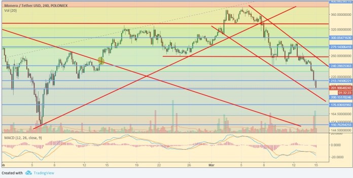 Monero vẫn tiếp tục tương đối yếu trong ngày hôm nay, và nó sụp đổ từ mức 240 USD cho đến mức hiện tại, để có thể test lại ngưỡng hỗ trợ chính 200 USD một lần nữa.