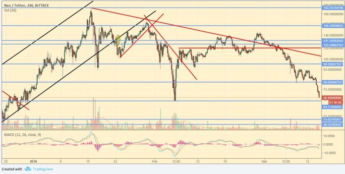 NEO cũng nằm trong số các đồng coin tương đối yếu, và nó đã giảm xuống dưới mức $ 80 vào nửa cuối của ngày. Đồng tiền số này hiện đang chạm mức thấp trong bối cảnh bán tháo đang xảy ra trên diện rộng.