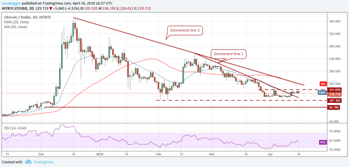 Mặc dù Litecoin đã thoát ra khỏi đường xu hướng giảm 1, nó đang rất nỗ lực để vượt qua mức kháng cự ở mức 141 USD.