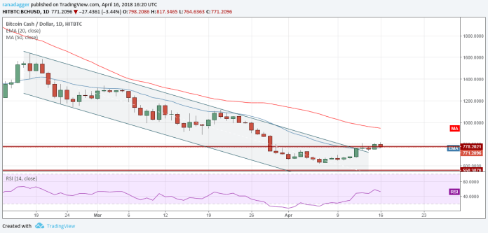 Chúng tôi đã đề xuất một vị trí dài hạn cho Bitcoin Cash ở mức 779 USD, trong bốn ngày qua, đồng tiền số này đã giao dịch trong một phạm vi khá hẹp. Nếu gấu có thể kéo giá xuống dưới mức 778 USD, chúng ta có thể sẽ thấy một phạm vi giao dịch còn tệ hơn nữa.
