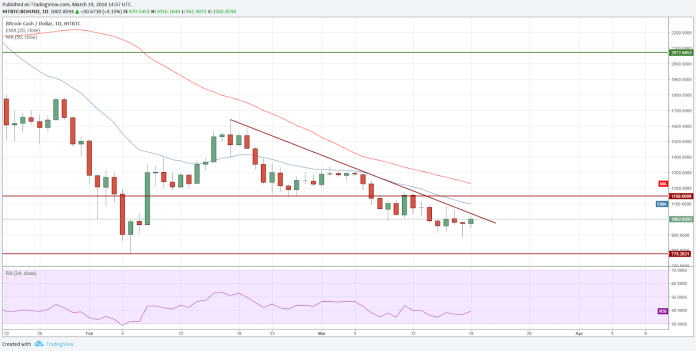Bitcoin Cash đã xuống dưới mức 900 USD trong phiên giao dịch ngày 18 tháng 3 nhưng kết thúc phiên ở mức khá cao, mức 900 USD đã chứng tỏ là sự hỗ trợ mạnh mẽ.