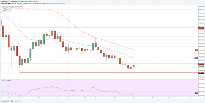 Ripple sụt giảm mạnh dưới ngưỡng hỗ trợ quan trọng ở mức 0.5627 USD vào ngày 18 tháng 3, nhưng mua ở các mức thấp hơn lại đẩy giá lên ở đường hỗ trợ.