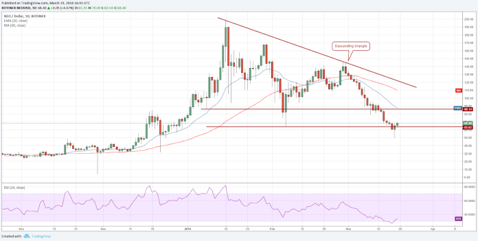 Nếu cặp NEO/USD giảm xuống từ vùng kháng cự và duy trì dưới mức 50 USD, chúng ta có thể sẽ thấy nó trở về mức 30 USD.