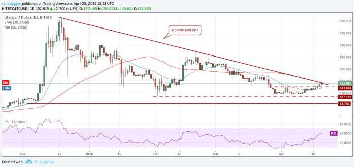 Sau khi phạm vi giao dịch của Litecoin bị thu hẹp trong một vài ngày, hiện tại Litecoin đã bắt đầu tìm thấy dấu hiệu mua vào và nó đã phá vỡ ngưỡng kháng cự quan trọng, trên đường xu hướng giảm và đường SMA 50 ngày.