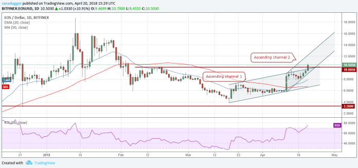 EOS đã phá vỡ được ngưỡng kháng cự tại mức 10 USD, đây là một tín hiệu khá tốt.
