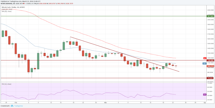 Nếu cặp BCH/USD không giữ được mức 980 USD, nó có thể trượt xuống 940 USD và sau đó là mức thấp nhất vào ngày 18 tháng 3 là 884 USD