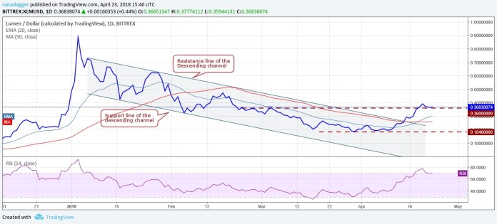 Nếu cặp XLM/USD không suy giảm dưới mức 0.36 USD này, nó vẫn còn target cần phải hoàn thành ở mức 0.47 USD. Nếu giá đạt đến mức này, các nhà đầu tư có thể chốt trên 25% lợi nhuận và giữ phần còn lại cho các vị trí tiếp theo.