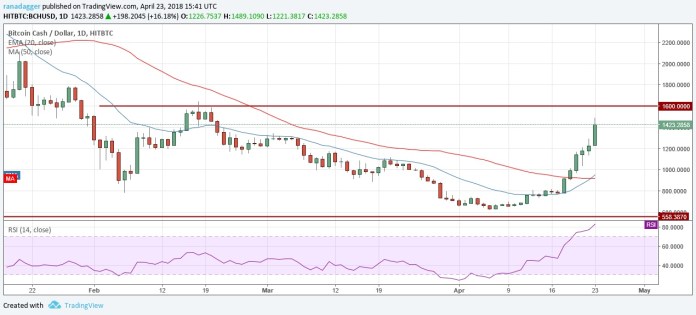 Chúng tôi đề xuất nên chốt trên 25% lợi nhuận tại mức 1.500 USD, và giữ phần còn lại cho các vị trí tiếp theo. Trong trường hợp bitcoin cash phá vỡ trên mức 1.600 USD, thì điểm dừng tiếp theo sẽ là 1.800 USD và 2.000 USD, các nhà đầu tư nên cân nhắc chốt phần còn lại xung quanh phạm vi này.