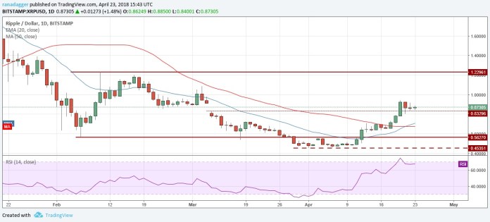 Nếu giá phá vỡ được mức 0.93 USD, nó sẽ là bàn đạp giúp ripple tiến tới mức 1.083 USD.