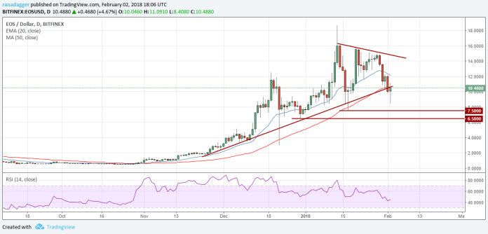 Cặp đôi EOS/USD cũng tương đối mạnh vì nó cũng đang nằm trên đường SMA 50 ngày. Các nhà đầu tư mạo hiểm có thể mua vào với mức giá dưới 9 USD và giữ mức dừng lỗ là 7,4 USD. Mục tiêu lợi nhuận tiếp theo sẽ ở mức 14 USD