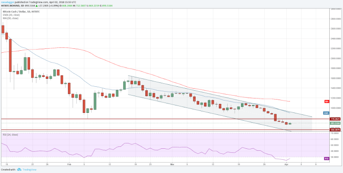 Nếu giá không vượt qua 778 USD, thì cặp BCH/USD sẽ tiếp tục trượt xuống dưới mức 600 USD và 558 USD.