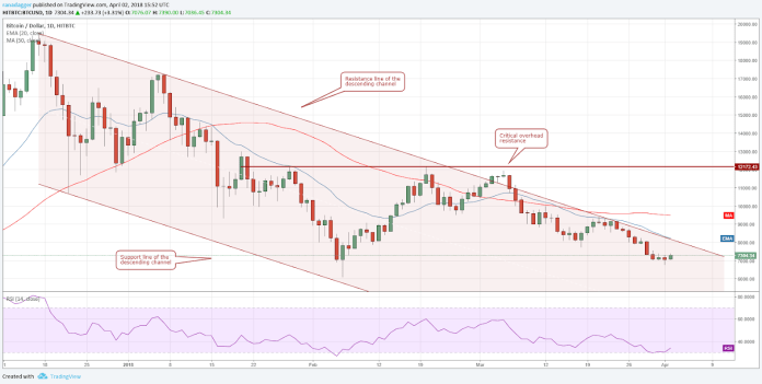 Bitcoin đã phá vỡ mốc 7,000 USD vào ngày 1 tháng 4, với sự sụt giảm giá hiện tại đã tạo cơ hội cho những chú bò đẩy giá lên trở lại. Kết quả là giá đã tăng lên ngưỡng 7.000 USD một lần nữa.