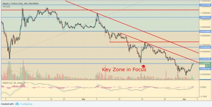 Ripple phải đối mặt với mức kháng cự tại 0.57 USD, 0.68 USD, 0.85 USD