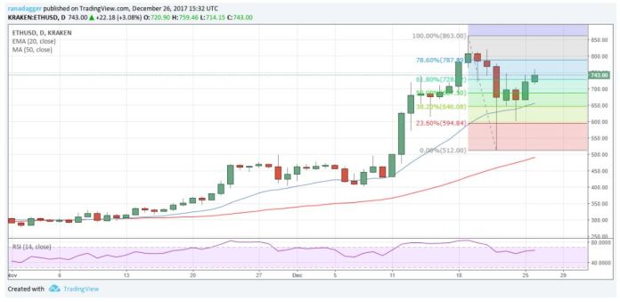 Vào ngày 24 tháng 12, đường EMA 20 ngày đóng vai trò là mức hỗ trợ mạnh