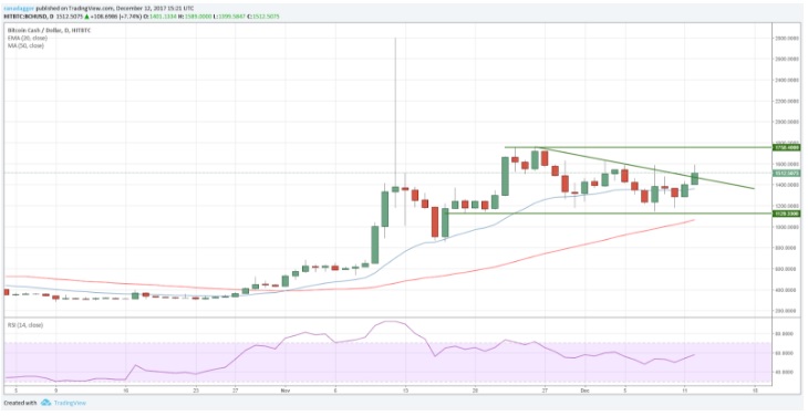 Bitcoin Cash thời gian gần đây có mức tăng trưởng khá chậm chạp. Mức giá tăng trưởng vẫn quanh quẩn ở mức 1,129 USD đến 1,758 USD.