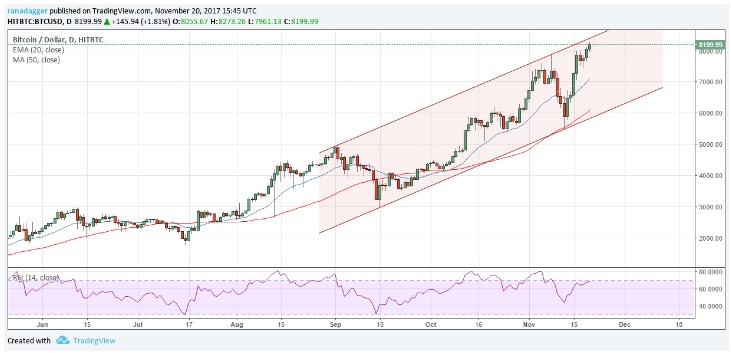 Bitcoin luôn tự phá những kỷ lục của chính mình, rất khó để thấy Bitcoin trên đà xu hướng giảm. Tuy nhiên, nó hiện đang được giao dịch bên trong một kênh tăng dần. Bitcoin gần như đang phải đối mặt với đường kháng cự của kênh.